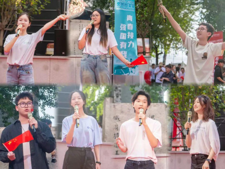 跑步环节结束后,青春洋溢的经院学子带来了《我相信》《我的未来式》《骄傲的少年》和《歌唱祖国》等一系列精彩节目,用嘹亮的歌声唱响对祖国的热爱,点燃心中的热血。经院师生们手持红旗,共同为祖国母亲76岁生日献上深情祝福。