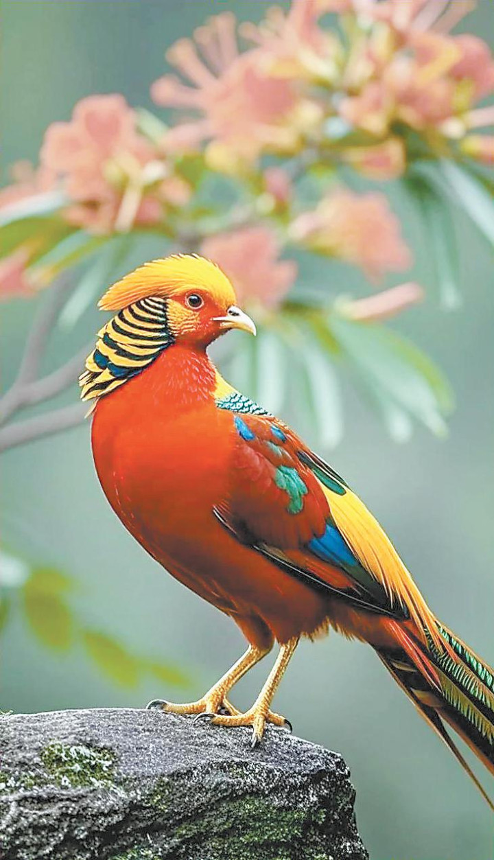 红腹锦鸡的美丽形象也激发了艺术家的创作灵感。在中国传统艺术中,红腹锦鸡常常被作为绘画的主题。锦鸡与花的组合象征“锦上添花”,而“鸡”与“吉”谐音,又代表“大吉大利”。