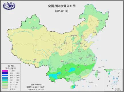 高荣介绍,华西秋雨11月中旬结束,雨期长,秋雨量历史最多。11月,全国平均降水量20.0毫米,接近常年同期(20.2毫米)。